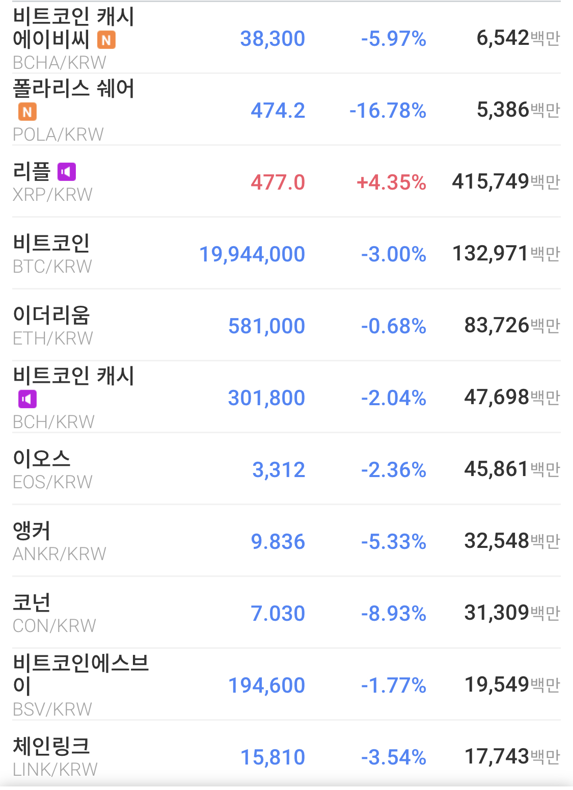 한때 리또속(리플한테 또 속냐? ㅋㅋ) 이라는 별명을 가질정도로 가격변동이 엄청났던 리플코인 이번에는 심상치가 않다 가상화폐계의 삼성전자라고 불리는 대장인 비트코인도 내리고 메이저 코인들이 줄지어 조정장이 온 와중에도 혼자 씩씩하게 순항중이다
