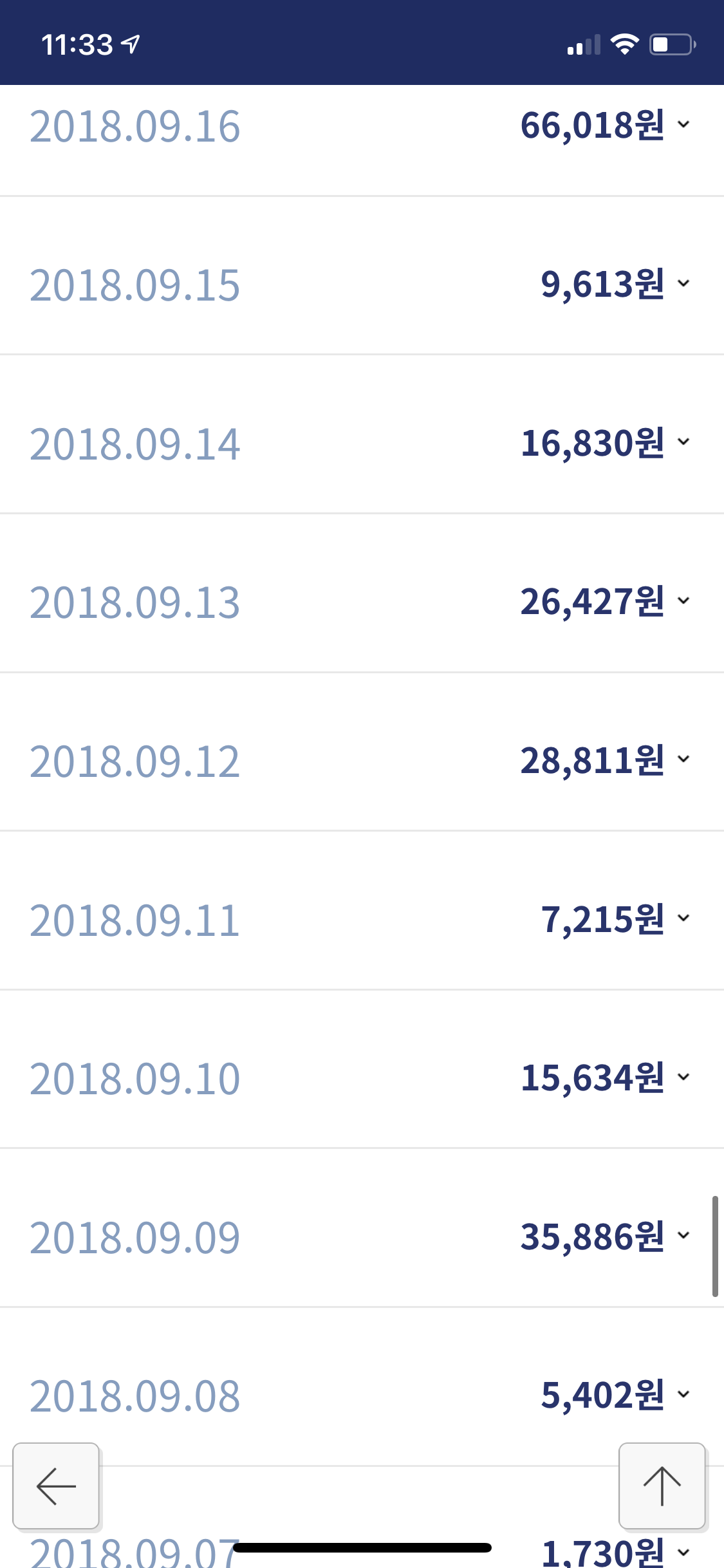 꽤 많이 벌었던날은 10만원까지도 찍혀있네.. 심지어 하루에 6원벌었던 날도 있다 ㅋㅋㅋㅋ 이처럼 개인 능력치에 달린일 요즘은 개인 물품(사업)을 아예 판매중인지라 이 플랫폼에서 일하는 것 보다 내 사업에 투자하는게 더이득인지라 그만두긴 했지만 직원들뽑고 여유가 생긴다면 다시 건드려 보고 싶은 욕망이 있다.