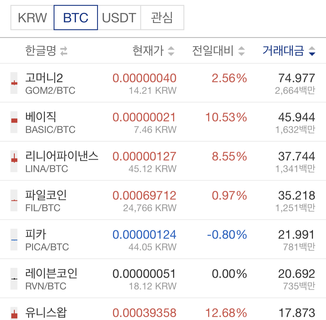 베이직은 현재 빗썸에는 원화상장이 이루어져 있지만 업비트에는 btc마켓에만 상장이 이루어져 있어