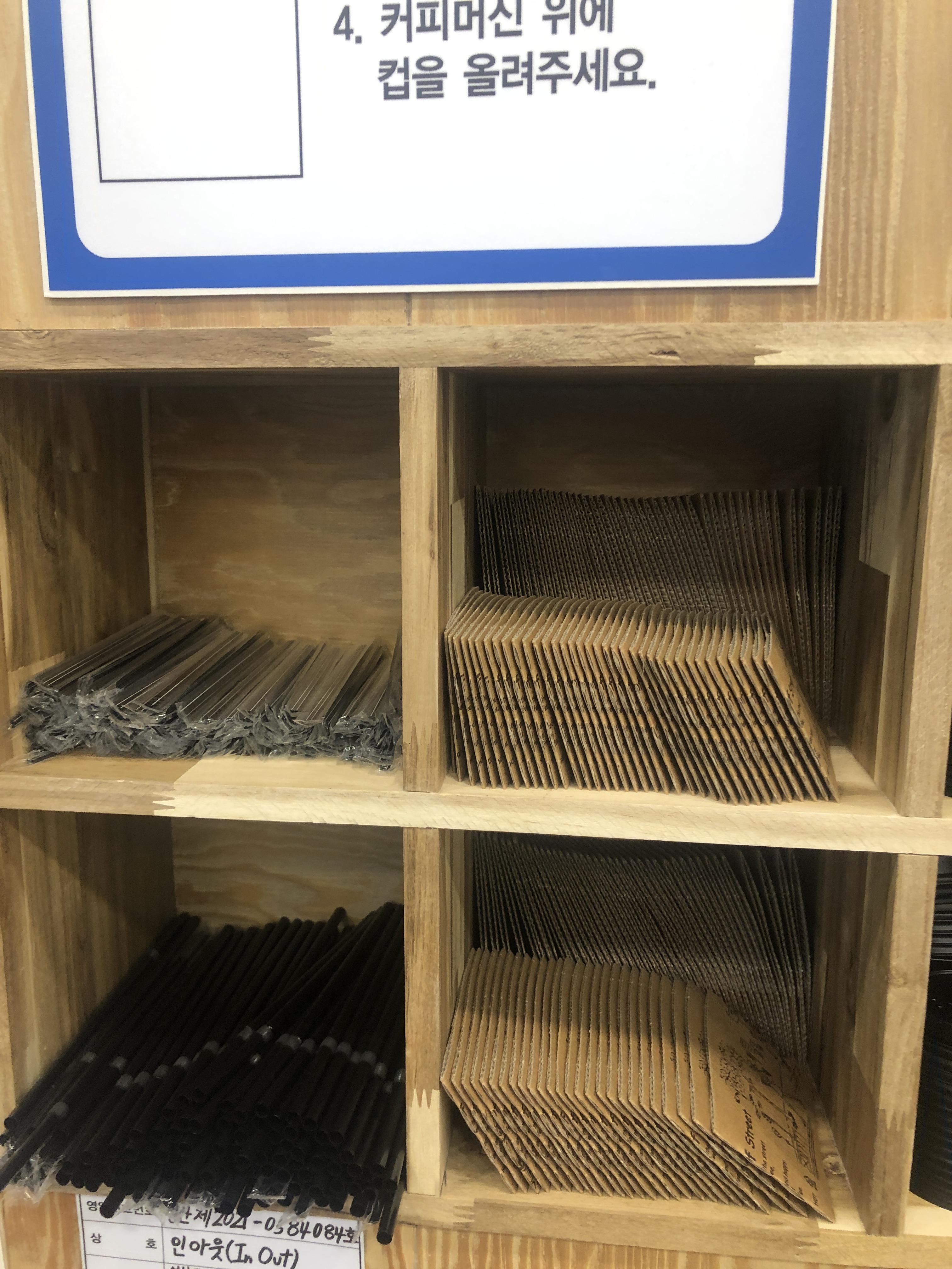 커피가 다 나왔으면 홀더와 빨대를 챙겨가면되는데 가끔 양심없는 사람들은 저기 있는 빨대를 몽땅 훔쳐가기도 한다