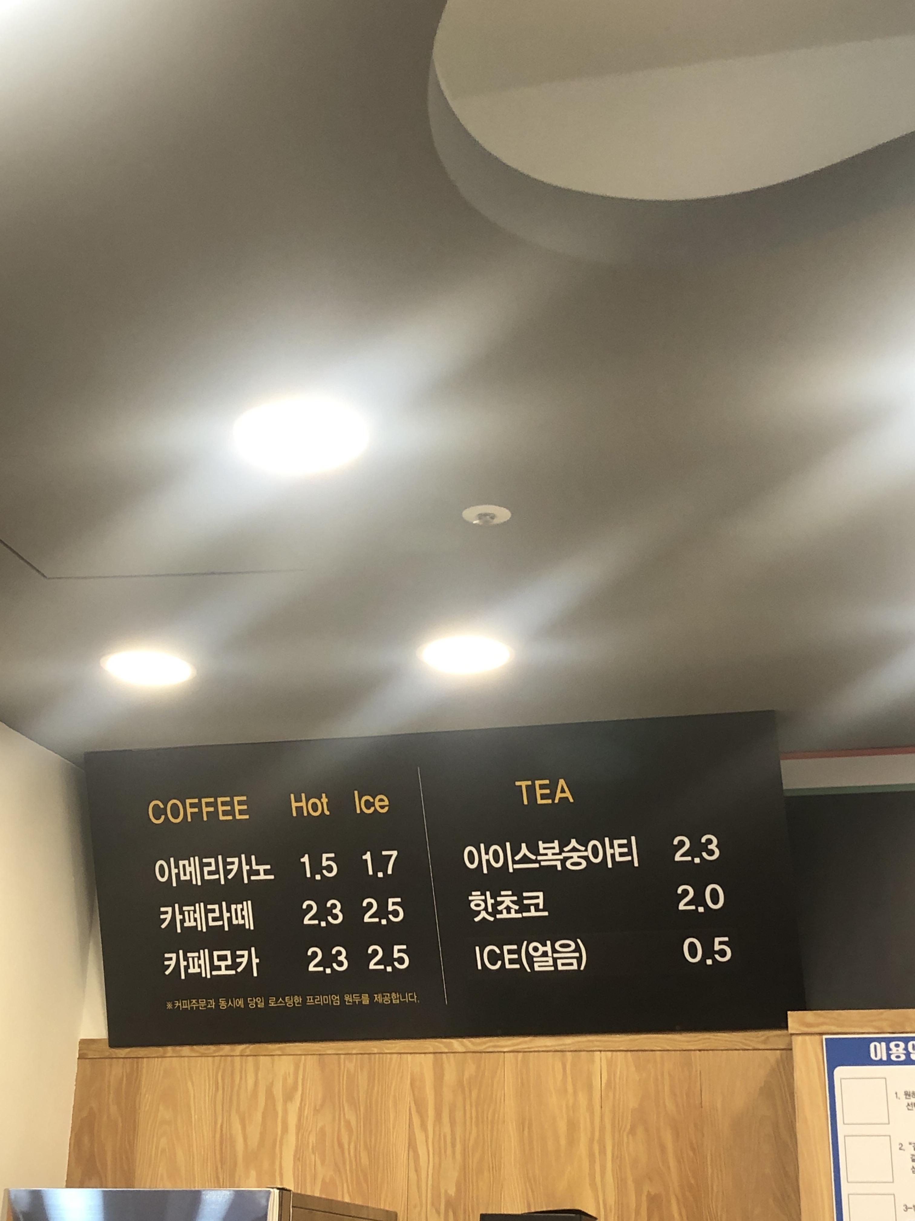 매장인테리어는 딱히 돈을 들였다거나 좌석이 많은건 아니지만 그게 뭐 중요한가 ㅋㅋ 커피만 뽑고 바로 주차장으로 직행할 손님이 태반일텐데 , 커피가격은 상당히 저렴하다 다른 무인카페들보다 500원 이상은 저렴한듯.