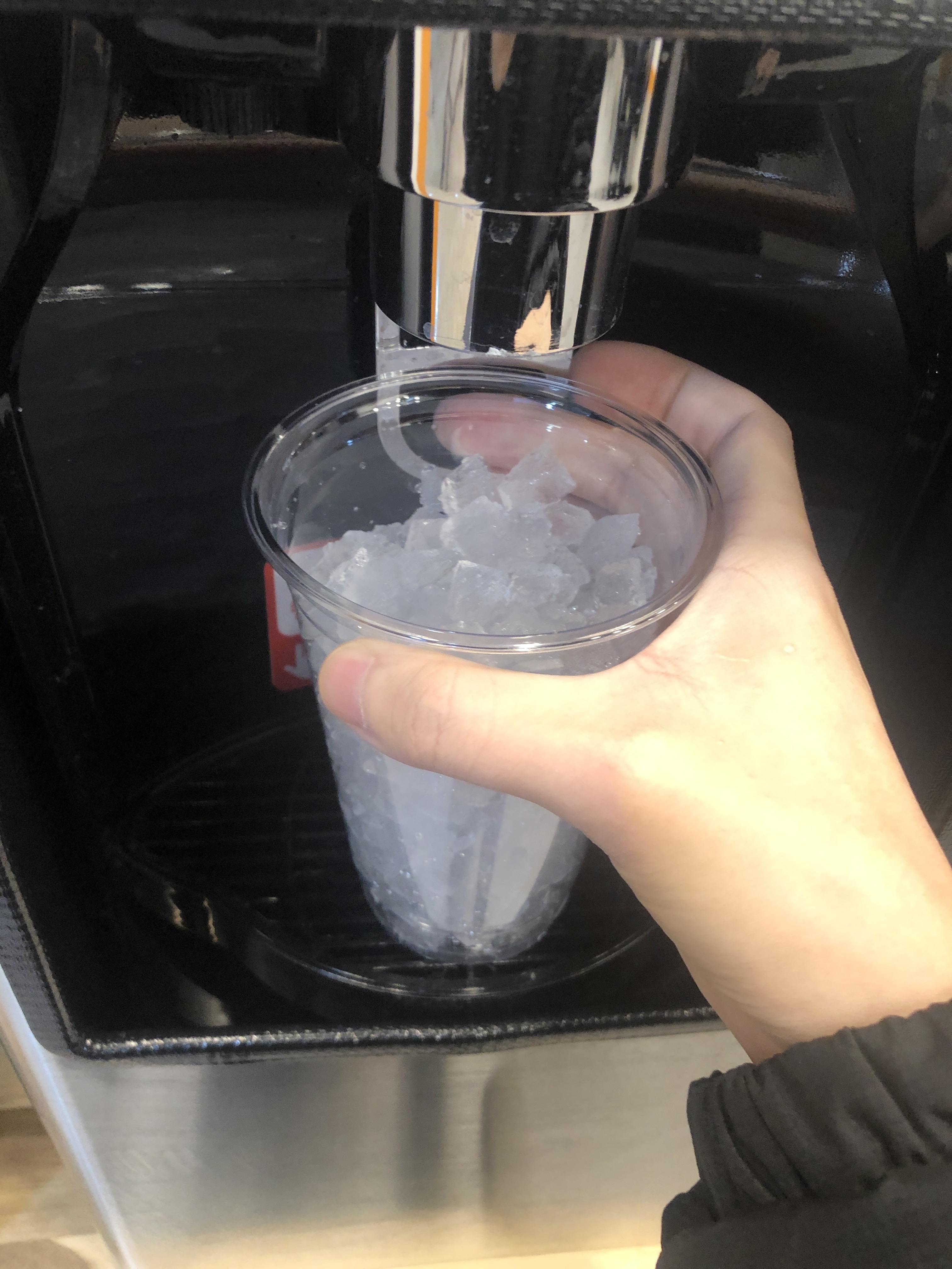 얼음정수기에서 얼음을 받고 커피머신에 다시 올려놓으면 커피가 추출되는 시스템이다.
