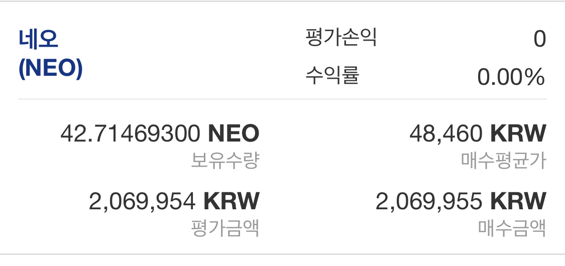 오늘 추천할 코인은 네오 코인이다.
