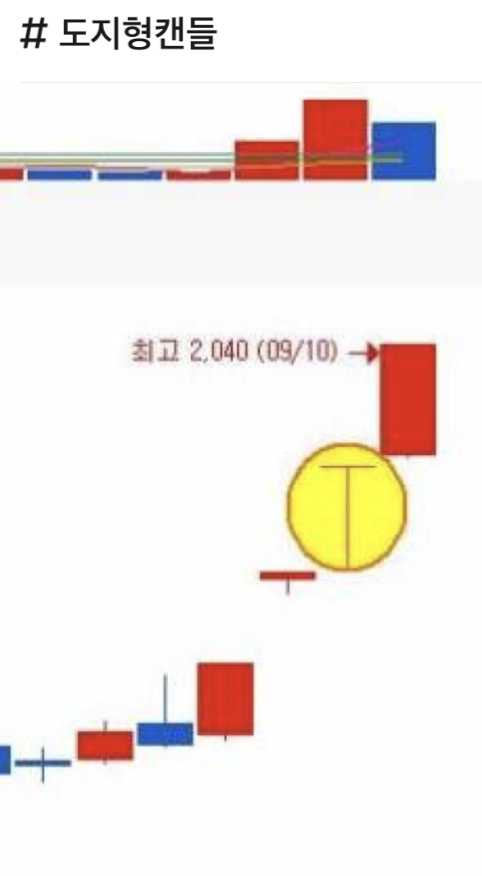 바로 도지형 차트 라는 것인데 여러분들이 알고 있는 도지코인 말고 십자형 차트를 도지 라고한다.